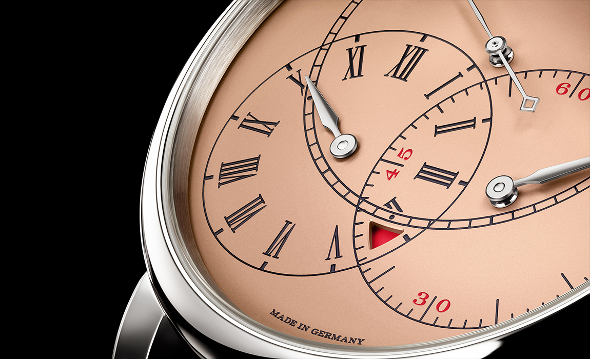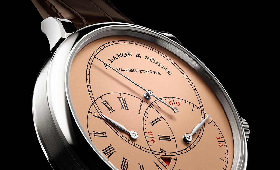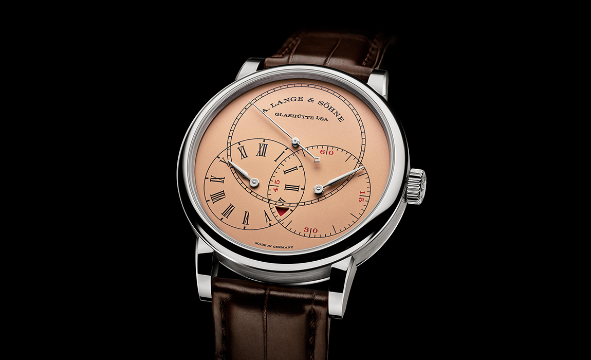 3つの重なり合ったサークルが印象的な「リヒャルト・ランゲ・ジャンピングセコンド」は、発表から9年を経た今日においても、その精緻なメカニズムとエレガントな魅力は少しも色褪せてはいない。その新作は18Kホワイトゴールドのケースにピンクゴールドのダイアルをマッチさせた世界限定100本の希少モデルである。