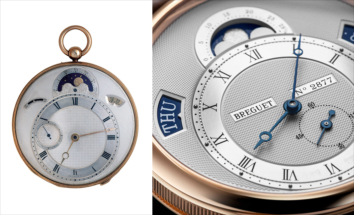 そのブレゲの発明は、「ブレゲ数字」と呼ばれる独特な書体のアラビア数字インデックスや、鋭利な先端とオフセンターに穴を持つアップルハンド(針)の「ブレゲ針」など意匠に始まり、手作業で緻密な彫り込みを実現したギヨシェ装飾、ケースの外側に立体的な一本の針を設置し、指で触ることで時刻を読み取る「モントレ・ア・タクト」、注文時に価格の1/4を支払うという予約支払い制を導入した「スースクリプションウォッチ」など、新しい装飾技法や時刻表示機能、さらには販売戦略に至るまで斬新な着想を現実のものとすることで、まさに200年は先を行く時計を世に送り出したのであった。