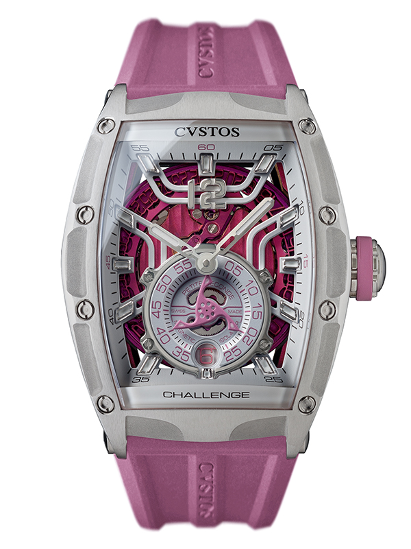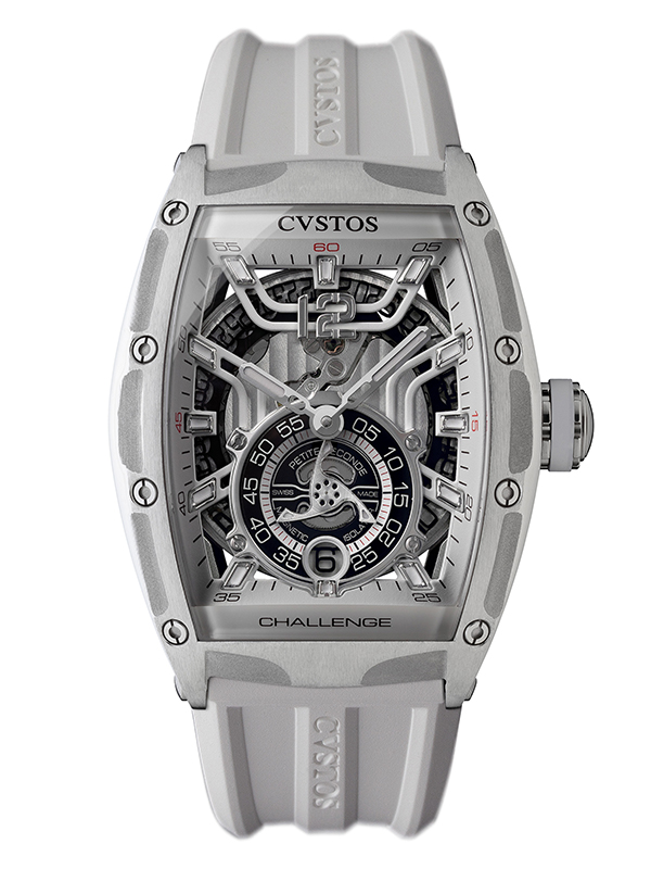 ジェットライナーの名の通り、本モデルは航空機の構造や素材を採用しています。立体的なスケルトンフェイスや軽量なステンレススティールケースが、洗練された機能美を演出しています。ストラップは航空業界でも使用されるラバーを採用し、すっきりとした印象を際立たせます。6時位置には大型タービンを想起させるスモールセコンドを搭載し、内部には永久磁石による安定機構が組み込まれているため、どの角度から見てもなめらかで美しい動きを保ちます。