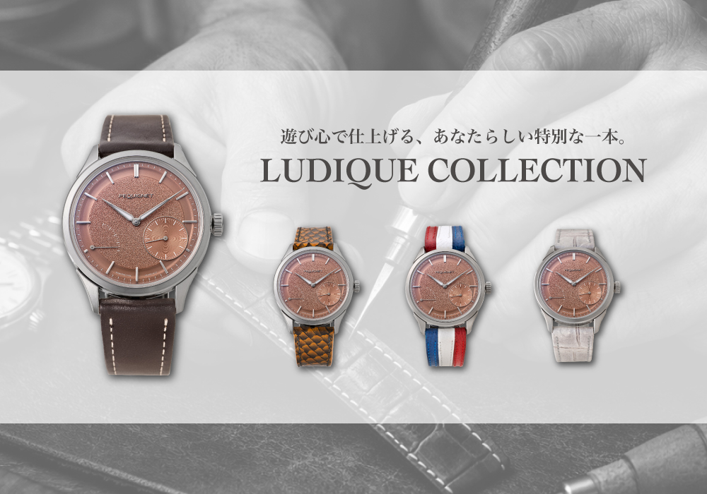 “LUDIQUE(ルディック)”とは、フランス語で遊び心や楽しむ気持ちを意味する言葉。本コレクションでは、時計を完成品として選ぶのではなく、ストラップで自分らしく仕上げる楽しさをご提案します。