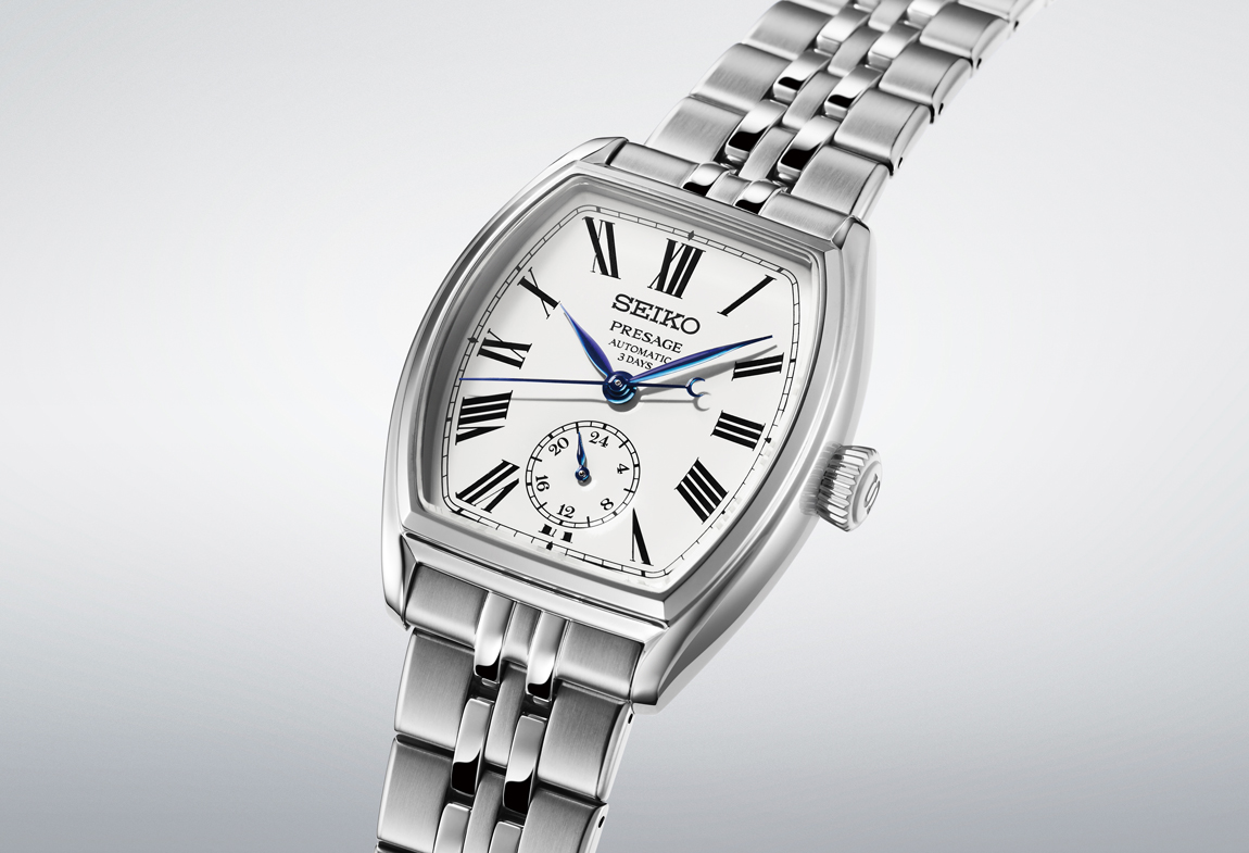 「日本の美をしなやかに纏う」をテーマに、日本のものづくりに込められた伝統的な感性と洗練されたエレガンスを備えた、プレザージュ「Classic Series」より琺瑯ダイヤルのトノー型モデルが登場。インデックスのローマ数字は、創成期に作られた懐中時計「タイムキーパー」をオマージュしつつ、力強さのある書体へアップデートしました。