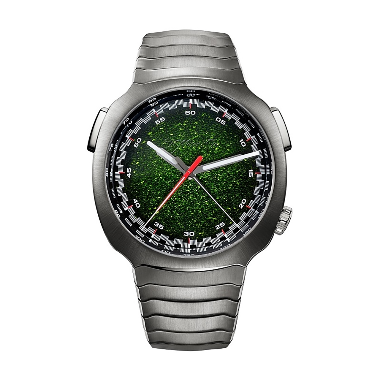¥9,724,000(税込)ムーブメント 自動巻き ケース素材 ステンレススチール ベルト素材 ステンレススチール ケースサイズ 42.3㎜ 防水 12気圧 パワーリザーブ 約72時間 文字盤 マトリックスグリーン フュメ フロスト仕上げ 備考 ムーブメントとダイアルの間に配置されたタングステン製ローター