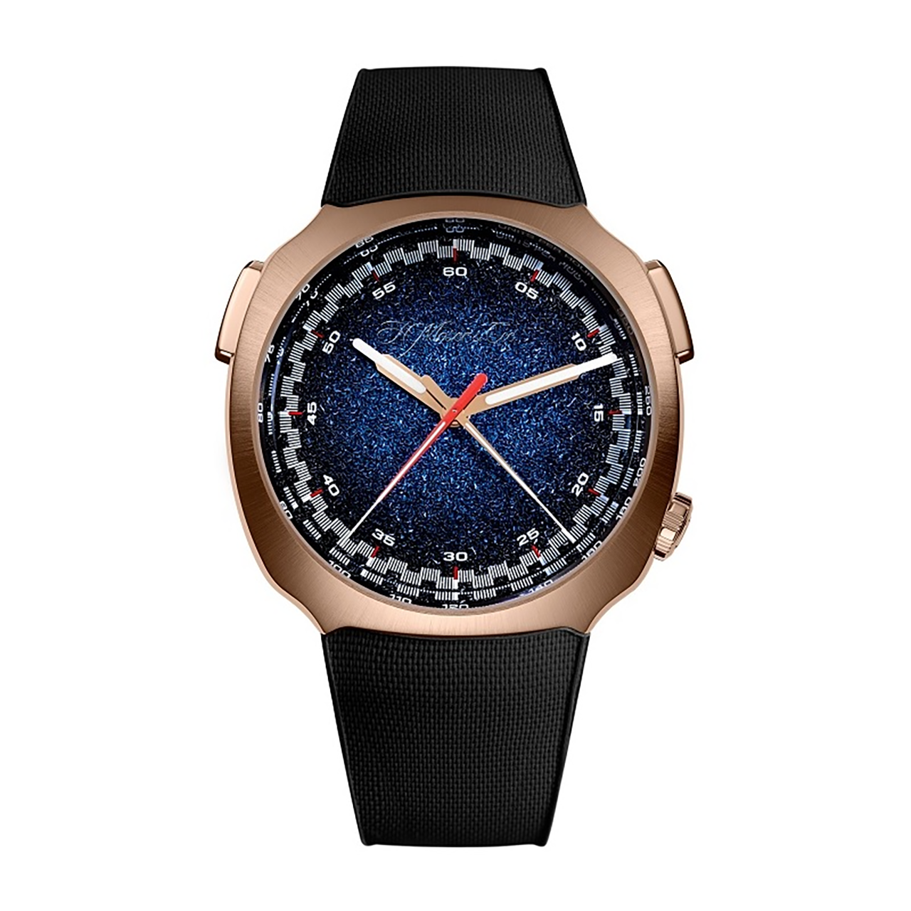¥12,826,000(税込)ムーブメント 自動巻き ケース素材 5N レッドゴールド ベルト素材 ブラックラバーストラップ ケースサイズ 42.3㎜ 防水 12気圧 パワーリザーブ 約72時間 文字盤 ミッドナイトブルーフュメ フロスト仕上げ 備考 ムーブメントとダイアルの間に配置されたタングステン製ローター