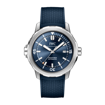 セーフダイブ・システム付き機械式回転式アウター/インナーベゼル堅牢な構造と急激な気圧変化への適応、優れた視認性と革新的な技術機能。これらは、IWCが1967年より製造しているダイバーズ・ウォッチ「アクアタイマー」の最大の特長であり、プロフェッショナルおよびアマチュアダイバー双方に愛される理由でもあります。「アクアタイマー・オートマティック」は、30気圧防水で、直径42mmの腐食に強いステンレススティール製ケースを備えたダイバーズ・ウォッチです。ブルーの文字盤に配置されたダイビング用表示には夜光塗料が塗布され、水中でも優れた視認性を提供します。ケース内部で鼓動を刻むのは、IWC自社製キャリバー32111。この自動巻きムーブメントが120時間のパワーリザーブを蓄えます。また、革新的な回転式アウター/インナーベゼルが、使いやすさと安全な潜水を実現します。アウターベゼルの回転は、スライディング・クラッチシステムを通してインナーベゼルへと伝達されます。セーフダイブ・システムにより、潜水時間の目盛りが付いたインナーリングが常に反時計回りに回転する仕組みになっているため、誤った調整をした場合でも潜水時間の限界を超過することがなく、常にダイバーの安全が守られます。IWCのクイック交換システムにより、ブルーのラバー・ストラップをブレスレットに簡単に交換していただくことが出来ます。