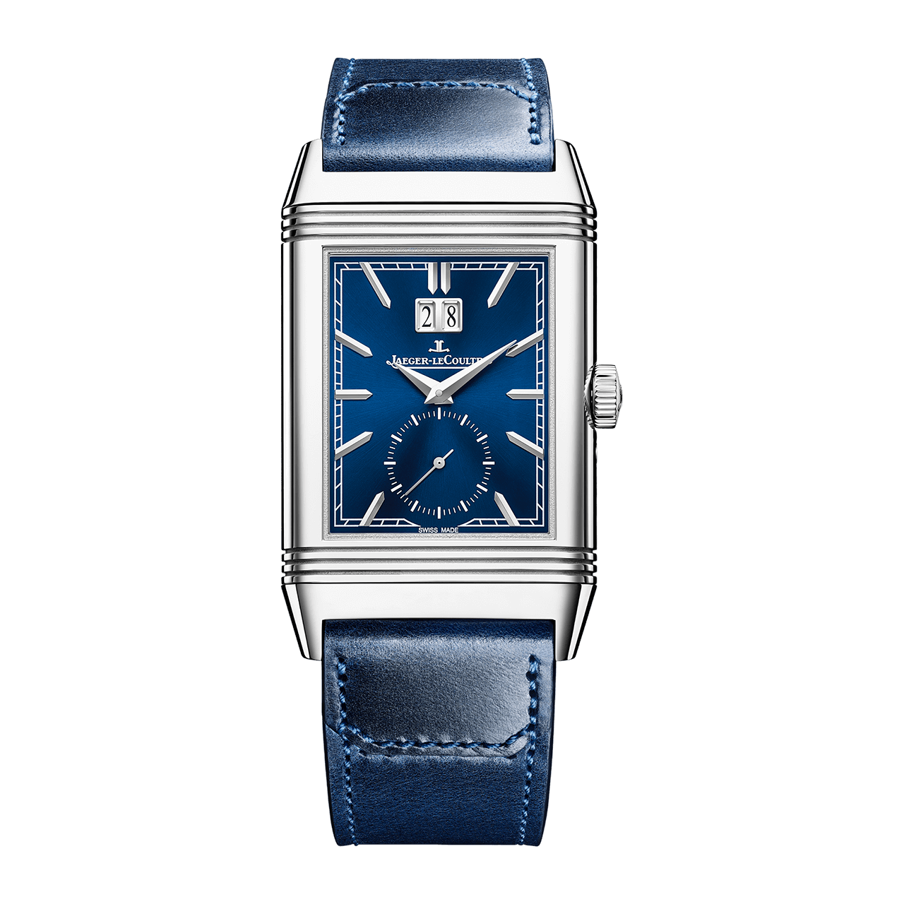 ムーブメント 手巻き ケース素材 ステンレススチール ベルト素材 時計にはストラップが付属しています: カーフ, ブルー カーフ,ブルー ケースサイズ 49.4 x 29.9 mm 防水 3気圧 パワーリザーブ 42時間 文字盤 ポリッシュ仕上げを施したロジウムプレートの植字インデックス, ブルー, サンレイ仕上げ 備考 ジャガー・ルクルト製キャリバー834