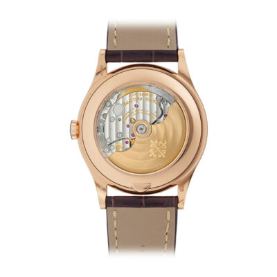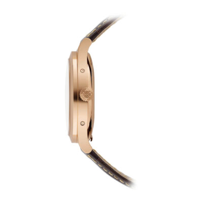 ムーブメント 自動巻 ケース素材 ローズゴールド ベルト素材 アリゲーター、ラージ・スクエア、ハンドステッチ、ブリリアント・ダークチェストナット。ローズゴールド折り畳み式バックル ケースサイズ 38.5mm 防水 3気圧 パワーリザーブ 最小35時間、最大45時間 文字盤 サンドベージュ・ソレイユ、ローズゴールド・ファセット仕上げ《オビュ》(弾丸)型植字アワーマーカー。ローズゴールド・ファセット仕上げドフィーヌ型時・分針