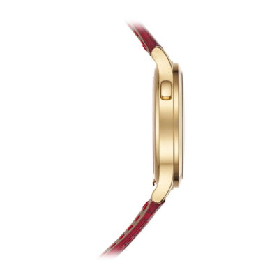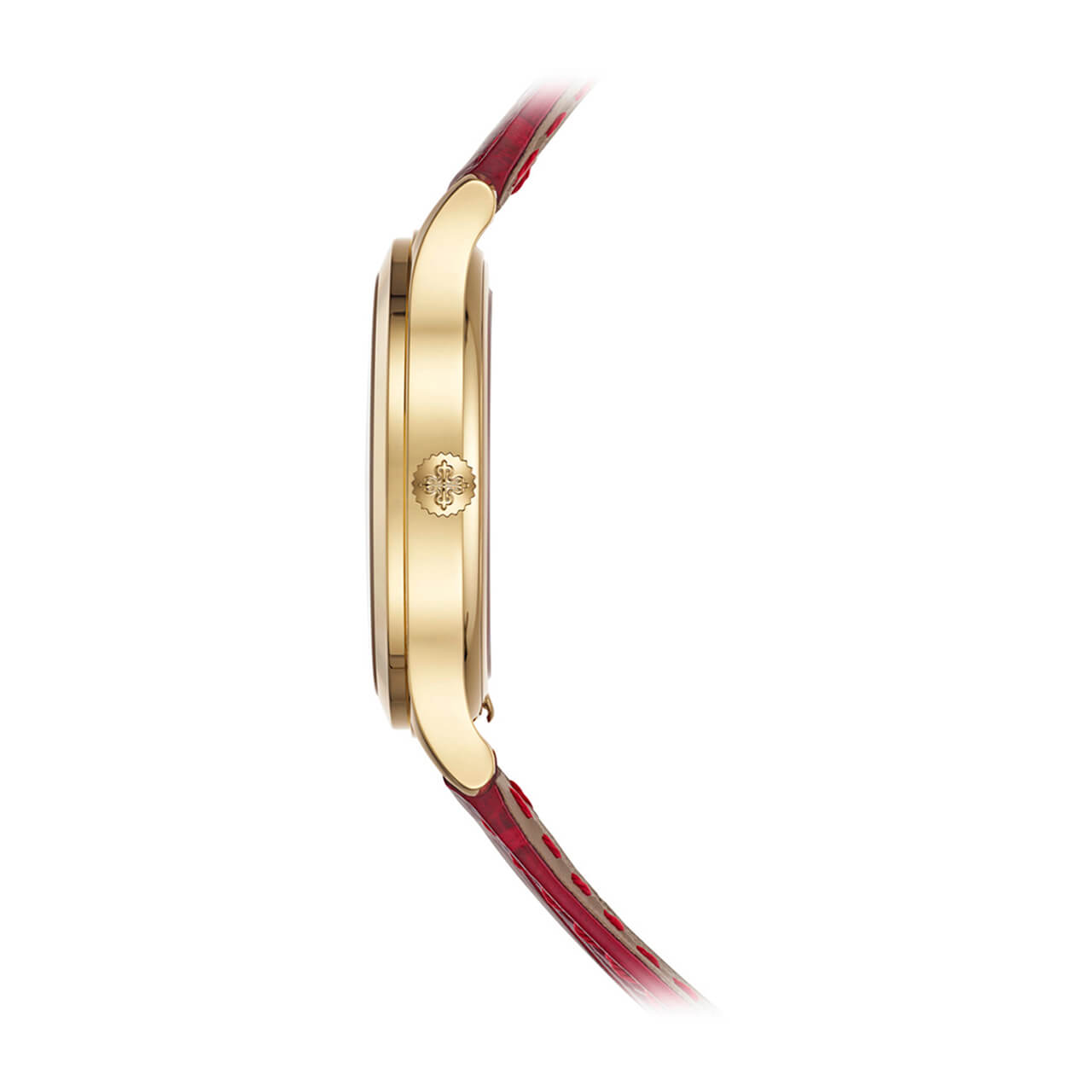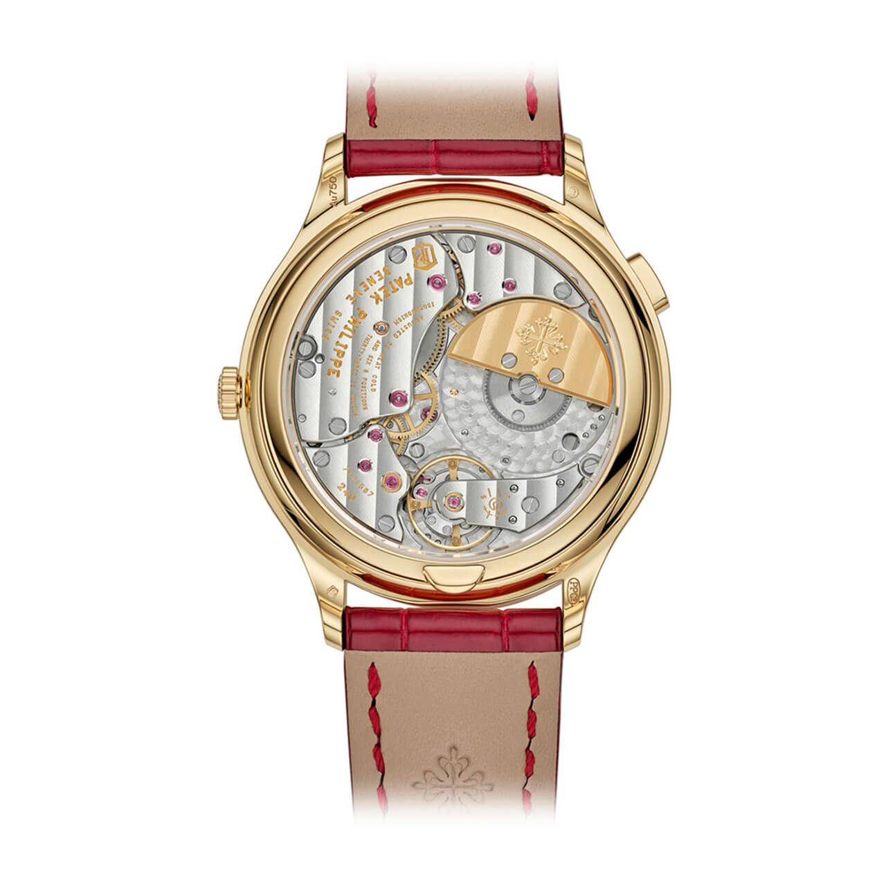 ムーブメント 自動巻 ケース素材 イエローゴールド ベルト素材 アリゲーター、ラージ・スクエア、ブリリアント・カーマインレッド。イエローゴールド・ピンバックル ケースサイズ 36mm 防水 3気圧 パワーリザーブ 最小48時間 文字盤 古風な篭の編み目をかたどった手仕上げギヨシェ装飾のラック・カーマインレッド、イエローゴールド植字アワーマーカー。イエローゴールドの菱形時・分針
