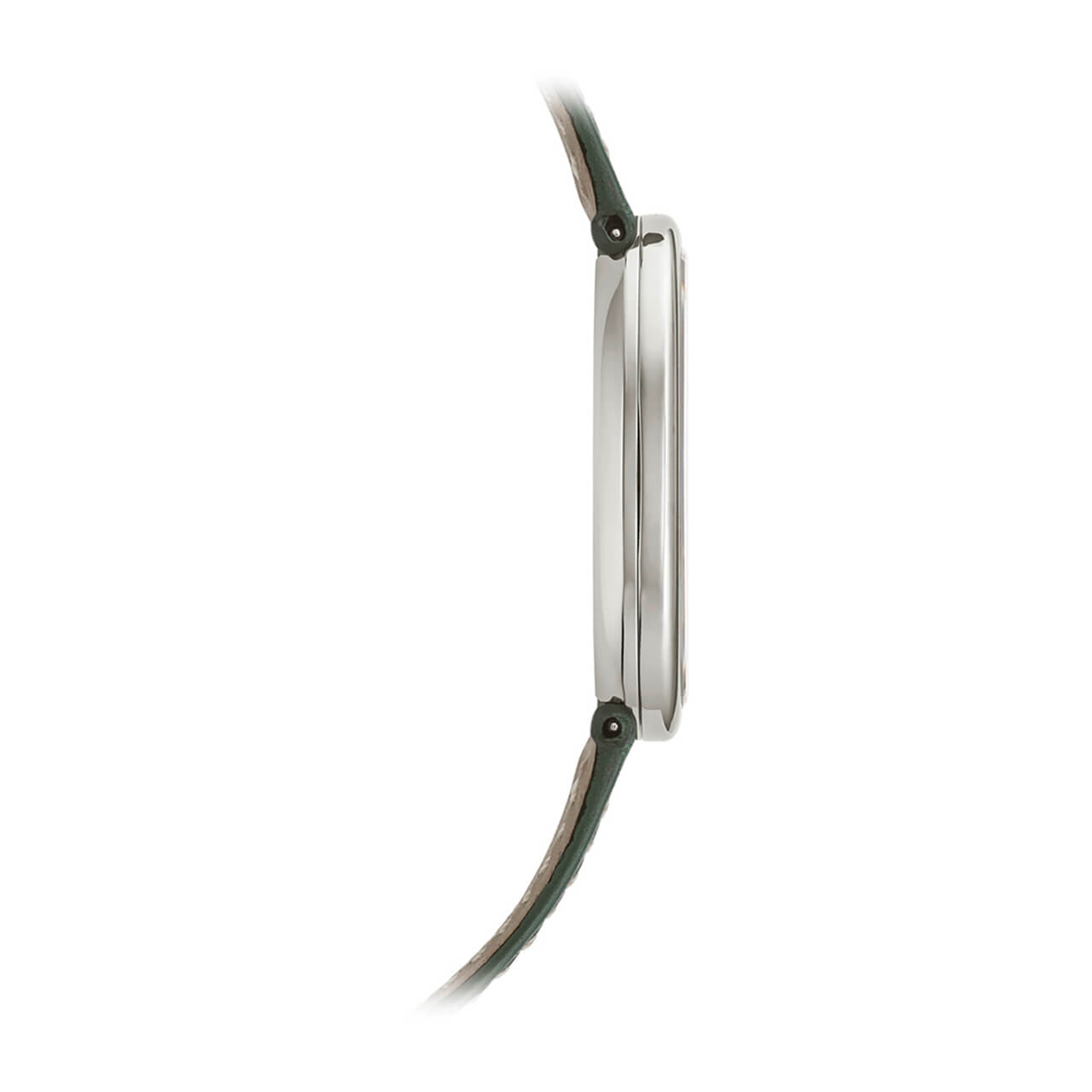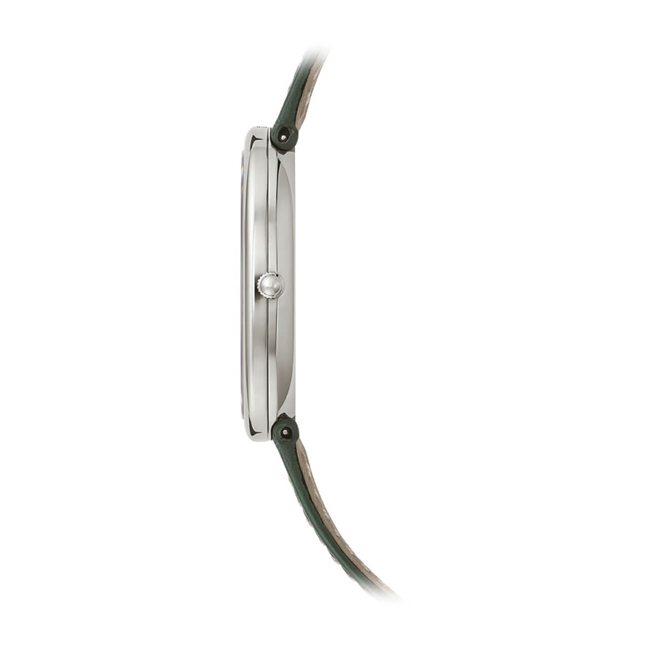 ムーブメント 自動巻 ケース素材 ホワイトゴールド ベルト素材 カーフスキン、ブリリアント・オリーブグリーン。ホワイトゴールド・ピンバックル ケースサイズ 31.1 x 35.6 mm 防水 3気圧 パワーリザーブ 最小48時間 文字盤 オリーブグリーン・ソレイユ、ホワイトゴールドのバトン型植字アワーマーカー。18金ゴールド文字盤プレート。ホワイトゴールドのシュヴェー型時・分針