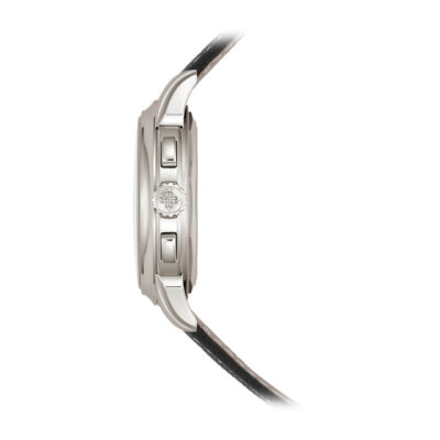 ムーブメント 手巻き ケース素材 プラチナ ベルト素材 コンポジット素材、ファブリック柄、ブラック。プラチナ折り畳み式バックル ケースサイズ 41mm 防水 3気圧 パワーリザーブ 最小55時間、最大65時間 文字盤 外周に向かって濃くなるブラック・グラデーションのラック・アントラサイト・ソレイユ、ホワイトゴールド・ファセット仕上げ《オビュ》(弾丸)型植字アワーマーカー。タキメーター目盛。ホワイトゴールド・ファセット仕上げドフィーヌ型時・分針