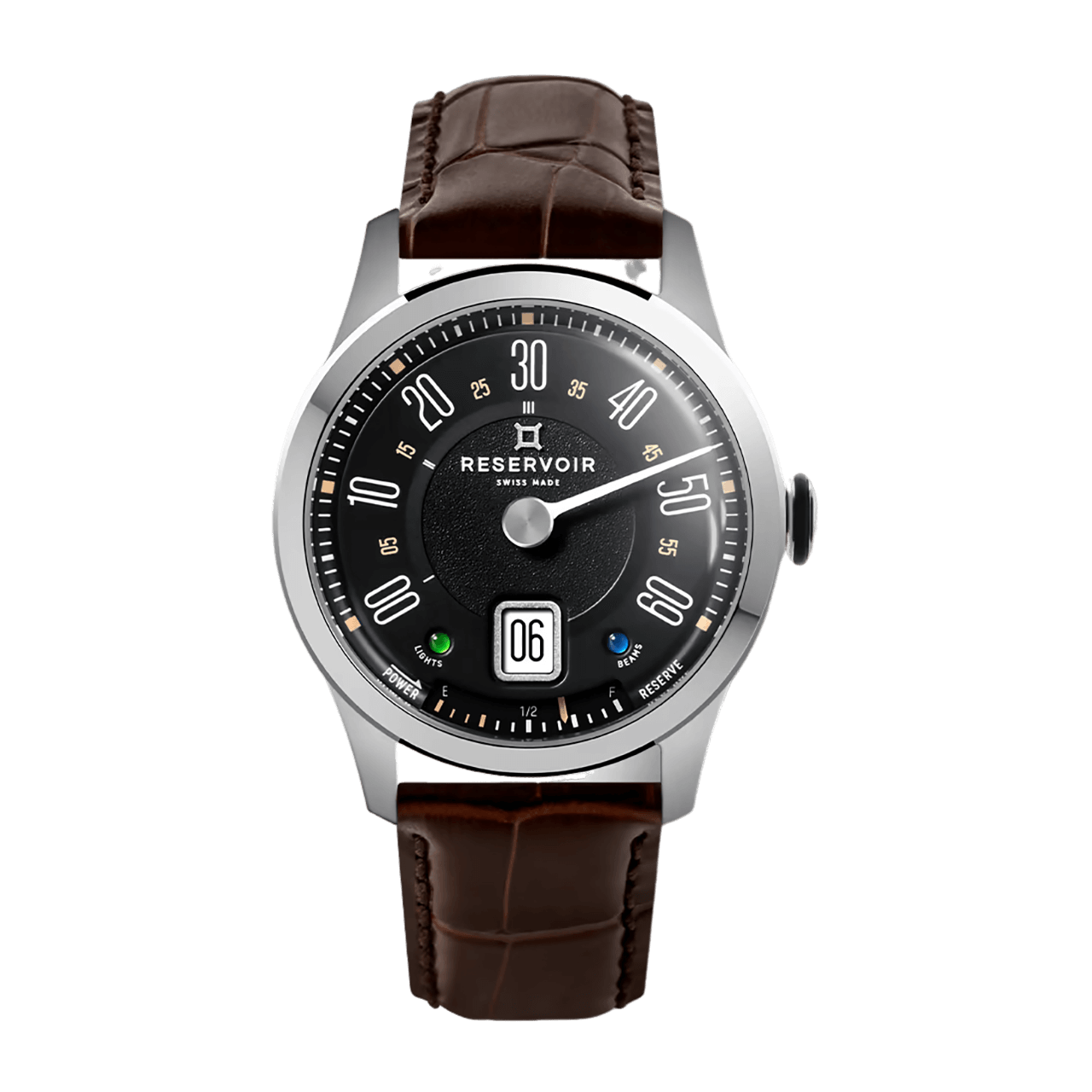 – 付け替え用NATOストラップ(クイックリリーススプリングバー付き)ロングブリッジ コレクションは、アイコニックな小型車が歩んだ壮大な旅路を辿るものです。伝統と革新のあいだを駆け抜けながら、このモデルは1960年代に開催されたモンテカルロ・ラリーをはじめ、数々のレースで熱狂的なファンを魅了してきました。 レゼルボワールの「ロングブリッジ クラブ」は、この小さな名車の計器類から着想を得て、アーバンシックと英国的ラグジュアリーを象徴する一本に仕上げられています。39mmケースにレザーストラップを組み合わせたクラシックな構成です。 ブラックダイヤル上には、トルマリンとサファ