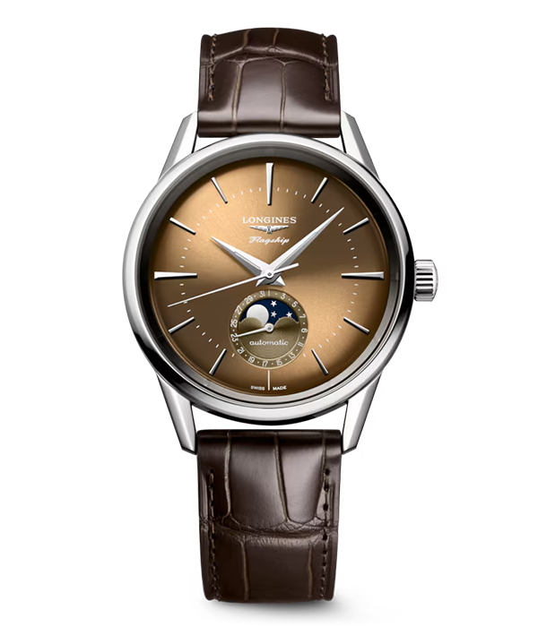 ステンレススティール製のケースに搭載される自動巻きの「Cal.L1.649.4.02.6」は、単結晶シリコン製ヒゲゼンマイを採用し、パワーリザーブが約72時間と長い時間に渡って高い精度を提供してくれる高精度ムーブメント。またケースバックには1950年代のモデルと同じく、魚をあしらった18Kゴールド製のメダリオンが埋め込まれており、このモデルが輝かしい「コンクエスト」の正当なる後継者であることを証明する。