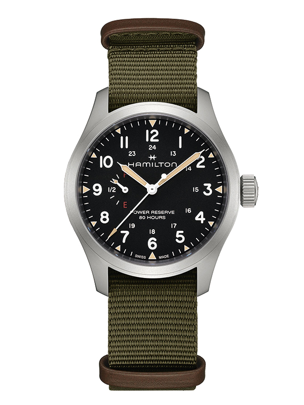 「カーキ フィールド メカ パワーリザーブ」は、フィールドウォッチの本質である機能性をさらに進化させながら、その伝統に深い敬意を表しています。エネルギー残量をひと目で確認できるこの実用的な複雑機構は、日々さらなる高みを目指す現代の冒険家にとって不可欠なツールとなっています。時を刻んでいくに相応しい機械式手巻きムーブメントで時計の醍醐味を味わっていただけましたら幸いでございます。