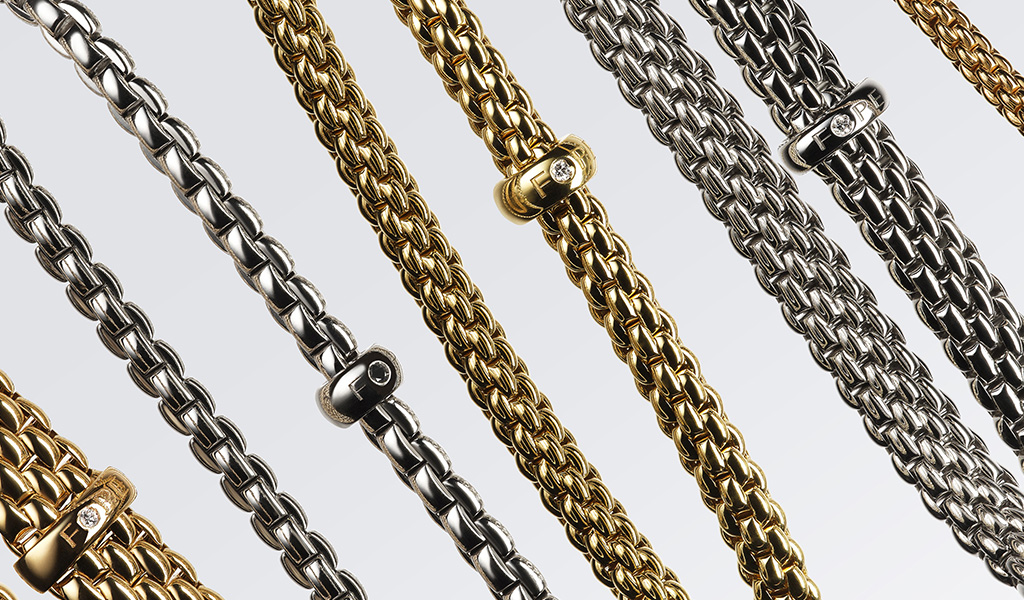 2009年に独自の研究開発によってうまれた伸縮性のある18Kゴールド製「FLEX’IT」(フレグジット)ブレスレットが発売されると、瞬く間にFOPEのアイコンとなりました。その快適な着け心地は世界中で高く評価され、現在世界50ヵ国以上で展開しています。