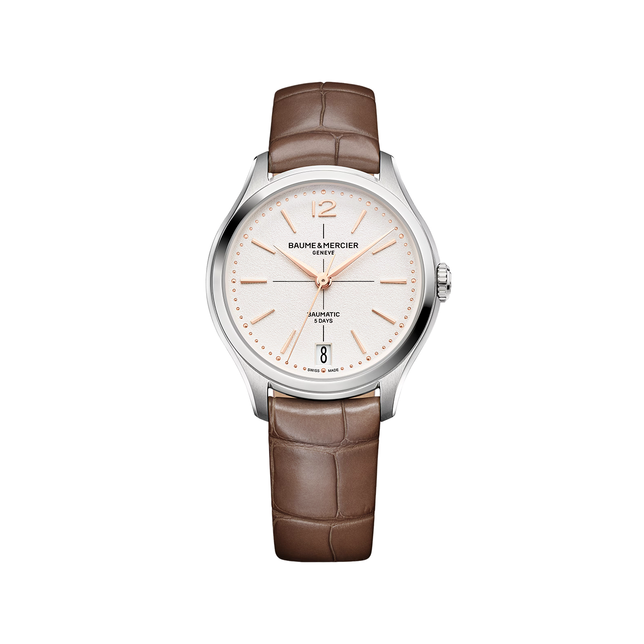 ¥511,500(税込)ムーブメント 自動巻き ケース素材 スティール ベルト素材 セミマット スクエアスケール ケースサイズ 34mm 防水 50m パワーリザーブ 120時間 文字盤 Argentée, Tapisserie Charmille 備考 時, 分, カレンダー表示, 中央に秒表示 複雑さ、精度、信頼性、耐久性において賞賛に値する、エレガントで精密なウォッチを手首に着けたいと願う、活気に溢れ自立した現代女性の期待に応えることで、それを実証しています。クリフトン コレクションは、繊細なデザインと高度な技術性を兼ね備えた2つの新しいモデルを通じてこの声を伝えます。コレクションおよびメゾンの歴史上初めて、直径34mmのケースを採用し、両方のタイムピースに、これまでメンズ専用だった自動巻き自社ムーブメント ボーマティックを搭載しています。お問い合わせ|03-5860-3617