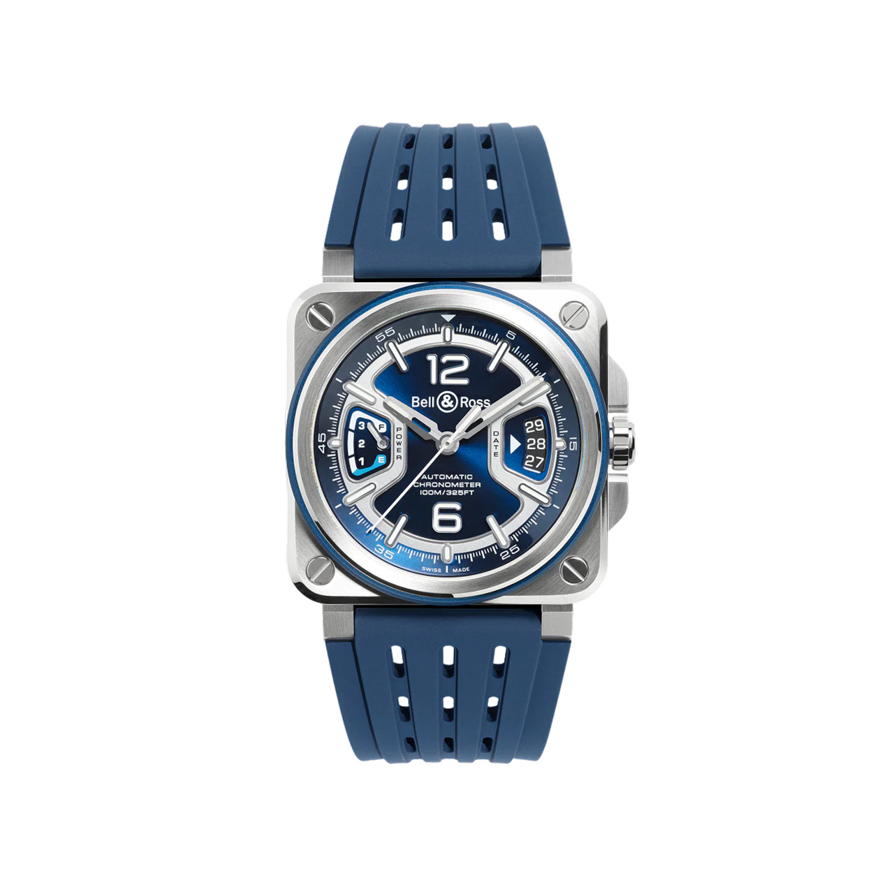 お問い合わせ|03-5860-3617ムーブメント 自動巻き ケース素材 ポリッシュ/サテン仕上げステンレススティール ベルト素材 オープンワークのブルーラバー ケースサイズ 41mm 防水 10気圧 パワーリザーブ 70時間 文字盤 サンレイ仕上げブルーラッカー