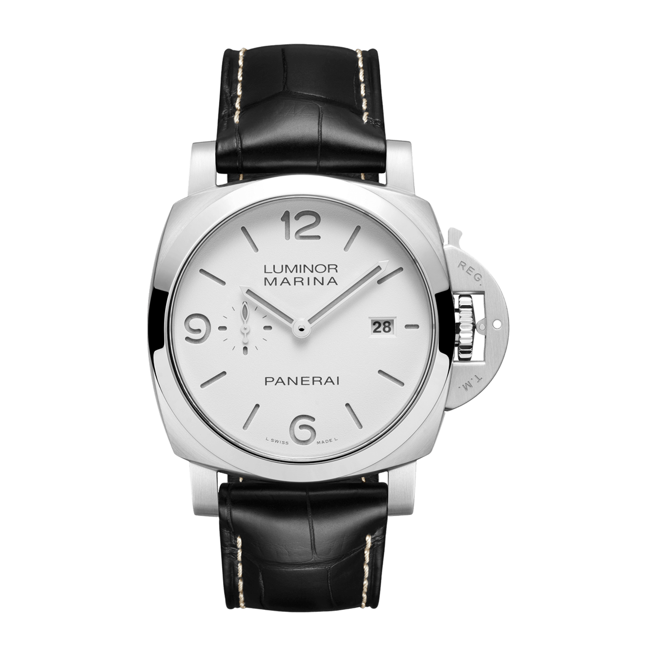 お問い合わせ|03-5860-3617ムーブメント 自動巻き ケース素材 AISI 316L サテンスティール ベルト素材 ブラック アリゲーター、エクリューステッチ、スタンダードサイズ ケースサイズ 44mm 防水 50気圧 パワーリザーブ 72時間 文字盤 ホワイト、スーパールミノバ Super-LumiNova® Grade X2のアラビア数字とアワーインデックス