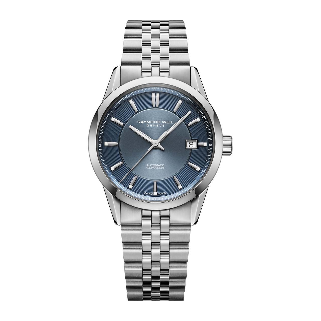 ¥418,000(税込)ムーブメント 自動巻き ケース素材 ステンレススティール ベルト素材 ステンレススティール ケースサイズ 38mm 防水 10気圧 パワーリザーブ 約41時間 文字盤 ブルー ガラス サファイアクリスタル 備考 シースルーバック デザインと機能をエレガントに融合させた、レイモンド ウェイルのフラッグシップコレクションであるフリーランサー。お問い合わせ|03-5860-3617
