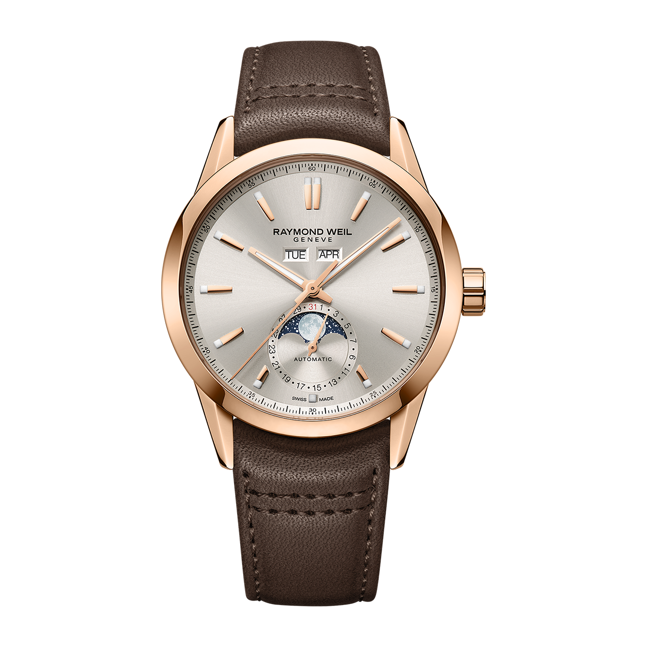 ¥693,000(税込)ムーブメント 自動巻き ケース素材 ステンレススティール(ローズゴールドPVD) ベルト素材 カーフレザー(ブラウン) ケースサイズ 40mm 防水 10気圧 パワーリザーブ 約56時間 文字盤 デューン ガラス サファイアクリスタル 備考 ムーンフェイズ、シースルーバック 「ミュージック&アート」をコンセプトとするレイモンド ウェイルのフラッグシップコレクション「フリーランサー」。お問い合わせ|03-5860-3617
