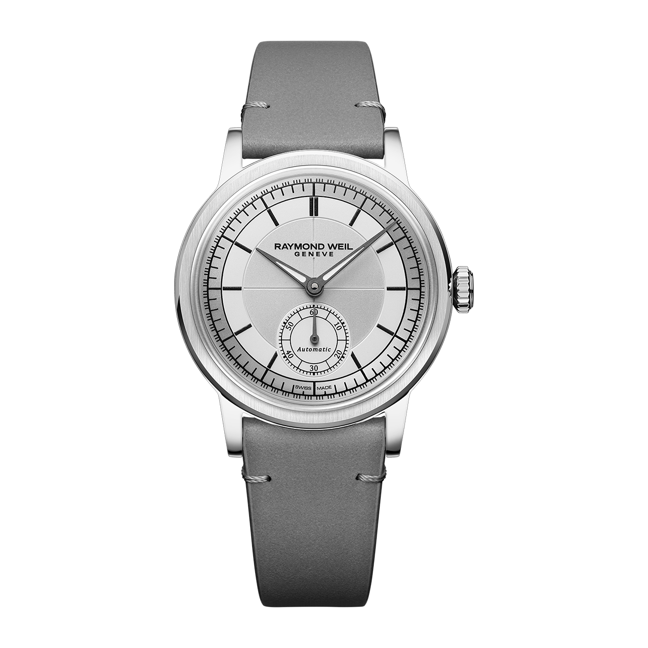 1930年代に流行したセクターダイアルや、主にプラスチック製風防に見られたボックス型風防などの古典的なディテールに、現代の技術・素材・トレンドを交えるレイモンド ウェイル独自の解釈を加えた「ネオ・ヴィンテージウォッチ」です。
